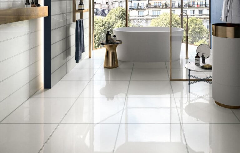 Vetri Bianco porcelain tile features a clean white aesthetic with a sleek polished finish that enhances light and space. The 12″ x 24″ format delivers a modern, refined look, making it ideal for walls or floors in contemporary residential and commercial interiors.