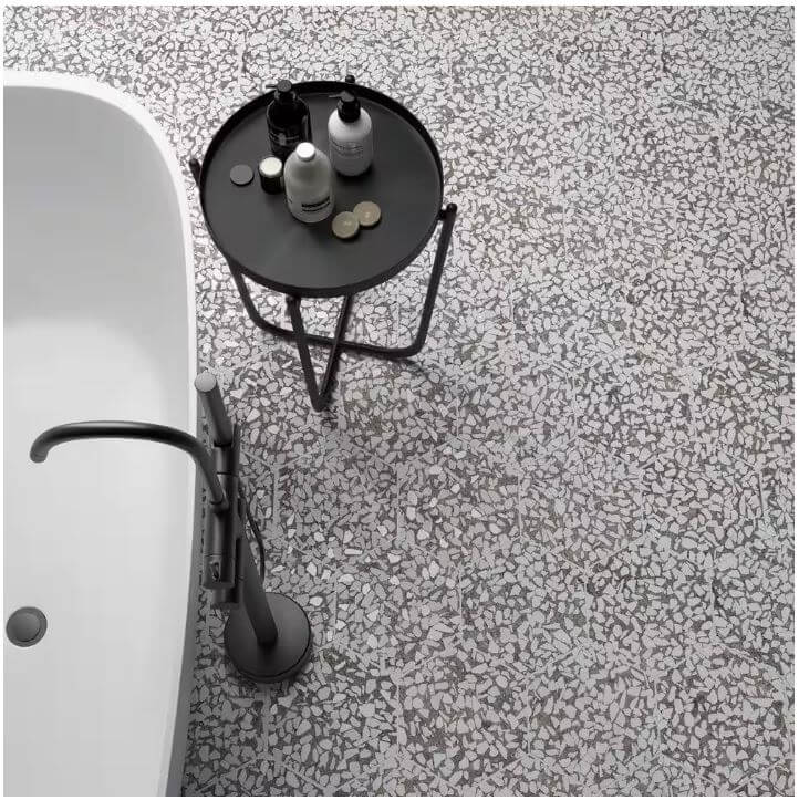 This 9-inch hexagonal terrazzo-look porcelain tile blends greys, charcoals, and subtle mineral flecks for a contemporary interpretation of traditional terrazzo flooring. The geometric shape adds architectural interest while the stone-like patterning provides texture and visual depth. Ideal for entryways, powder rooms, caf? spaces, or bold feature walls, Riazza Hex Grigio offers both artisanal charm and durable everyday performance.