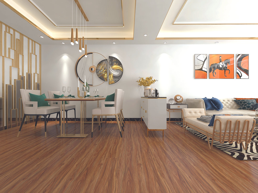 Copper Dawn SPC vinyl flooring features warm, copper-toned hues with natural wood-style detailing. Built with a rigid stone-plastic core, this 9″ x 48″ plank delivers enhanced stability, durability, and water resistance?ideal for high-traffic residential and commercial spaces.